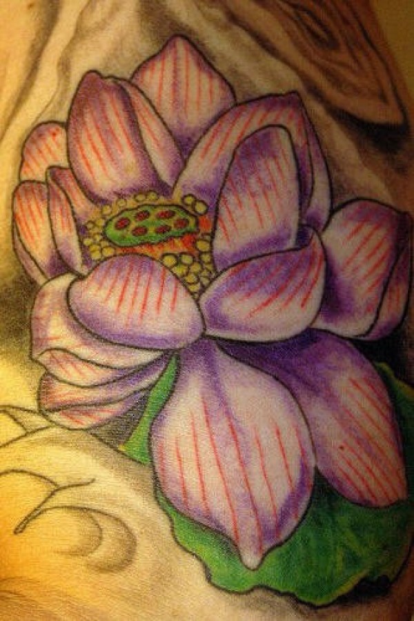 淡紫色莲花经典纹身图案