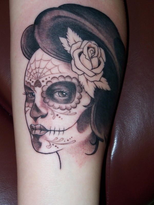墨西哥经典死亡女郎和玫瑰纹身图案