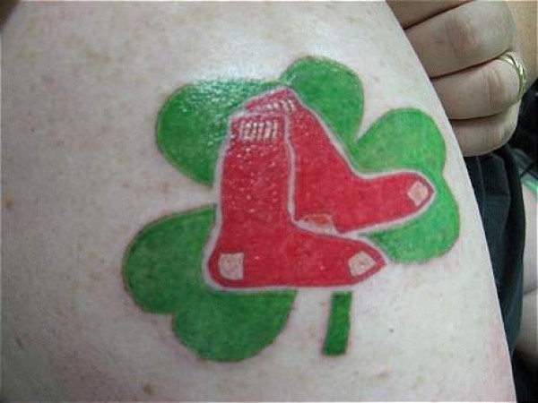 绿色的三叶草和红袜子纹身图案