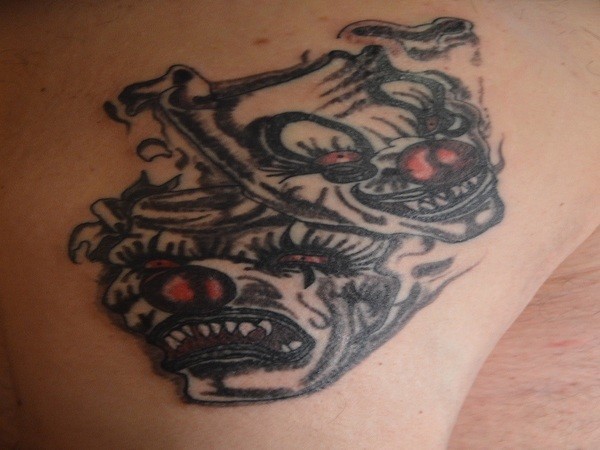 两个吓人的小丑面具纹身图案