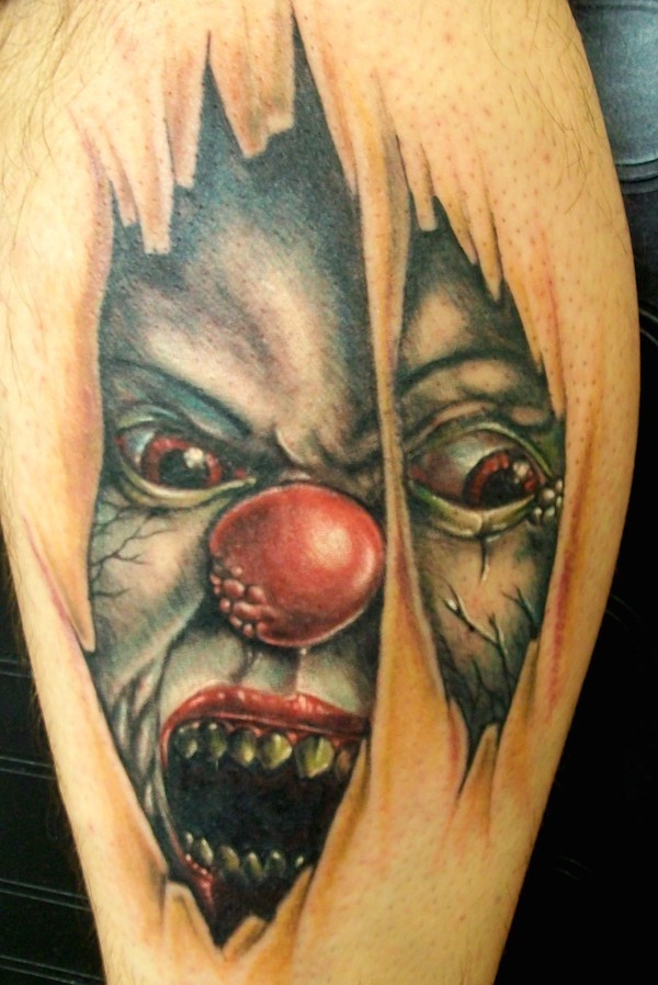 皮肤下可怕的怪物小丑纹身图案