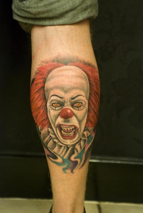 一个可怕的红色头发小丑肖像小腿纹身图案