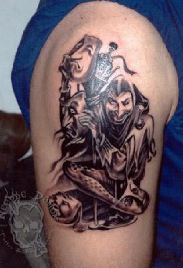小丑和面具纹身图案