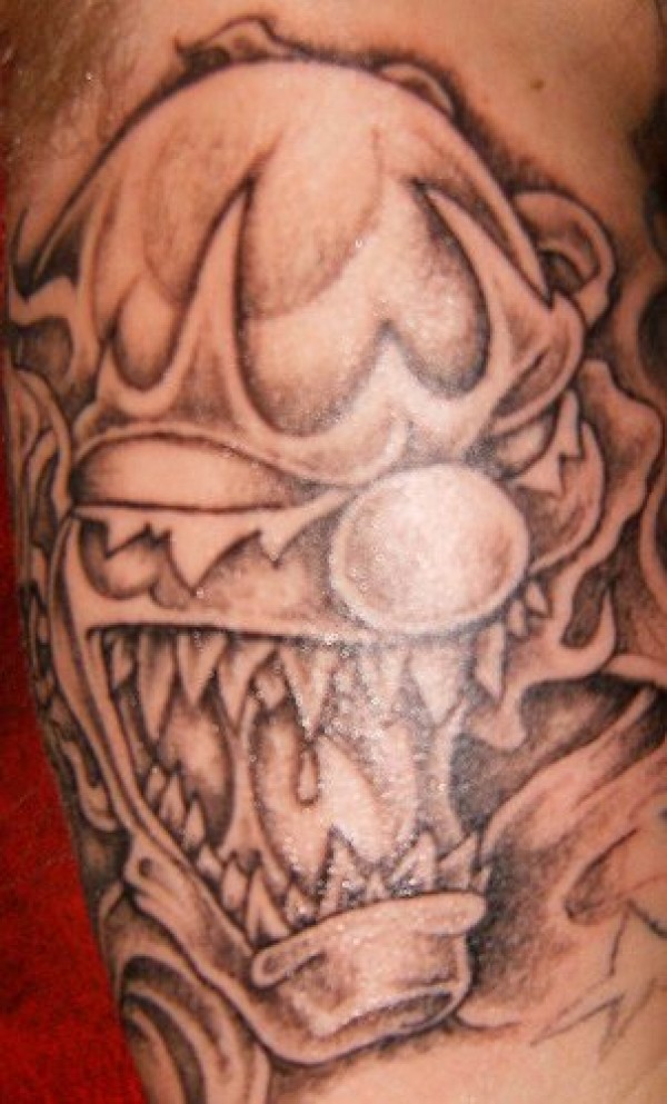 邪恶锋利牙齿的小丑纹身图案