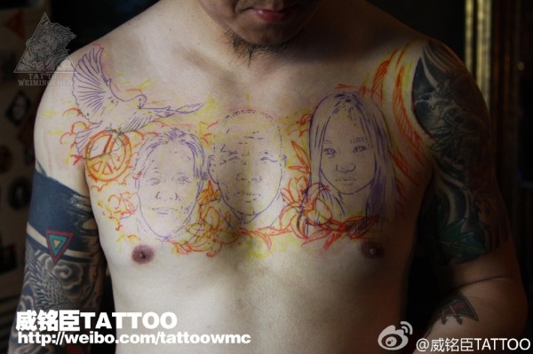 很有爱的作品把家人纹在胸口共七个小时左右绝对硬汉