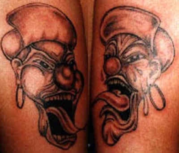 两个疯狂的小丑纹身图案