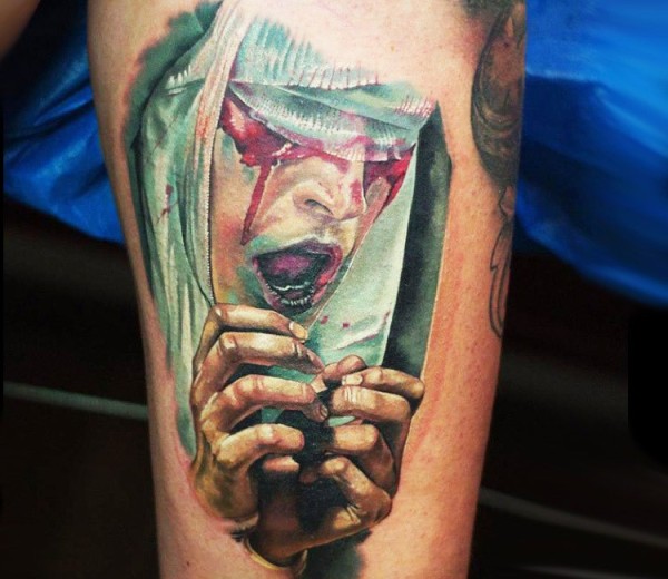 彩色写实风格毛骨悚然女人纹身图案