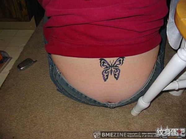 分享一款腰部时尚性感的蝶恋花纹身图案_腰部纹身图案大全_纹身图吧