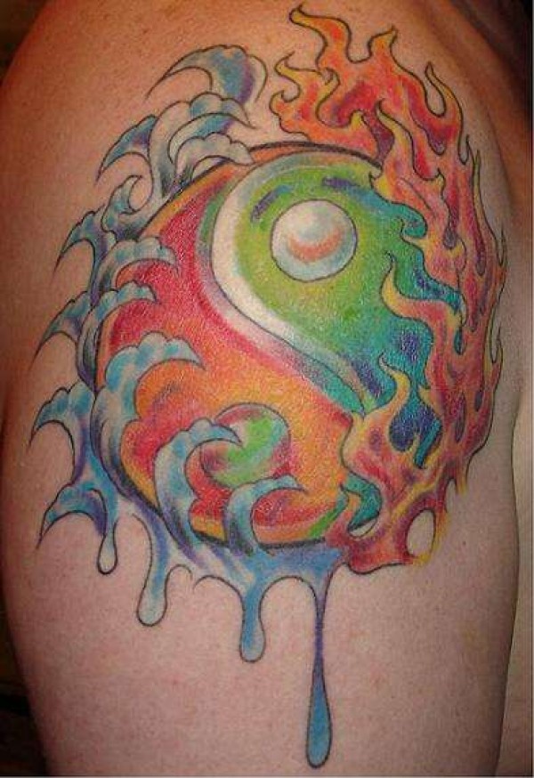 彩绘阴阳八卦水与火纹身图案