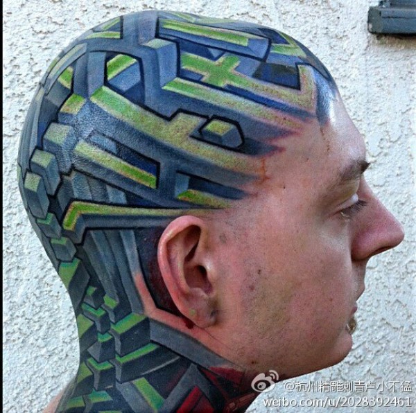 霸气男头部时尚纹身图片_头部纹身图案大全_纹身图吧