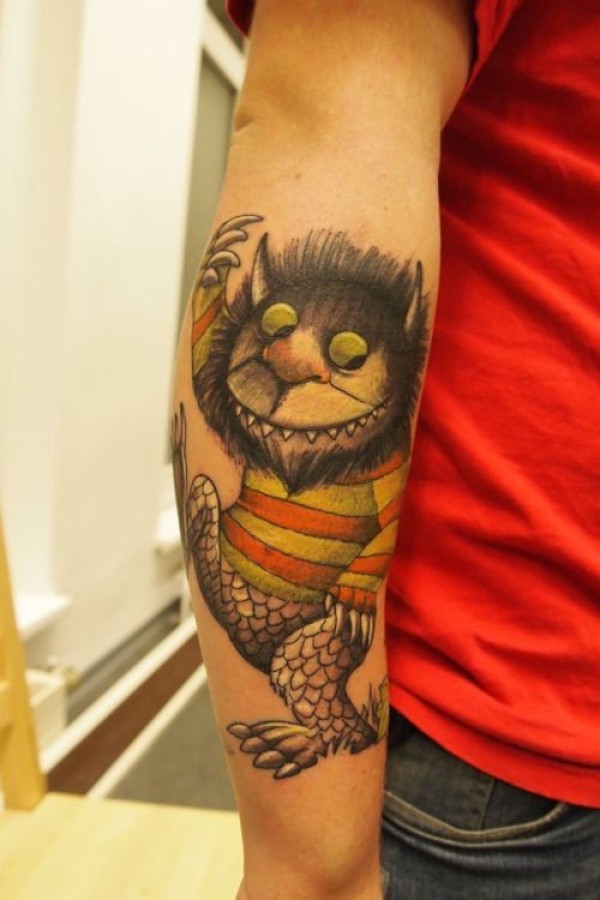 小臂可爱的彩色有趣怪物纹身图案