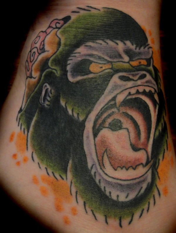 鲜艳的嚎叫大猩猩头彩色纹身图案