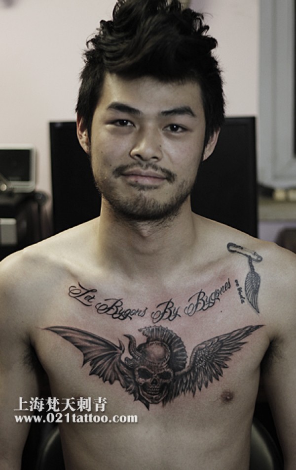 纹身图案胸部男 简洁大方的男生胸部纹身图案