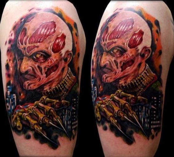 大臂彩绘恐怖弗莱迪克鲁格纹身图案