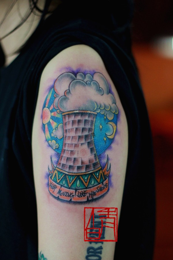 彩色的大烟筒纹身图案