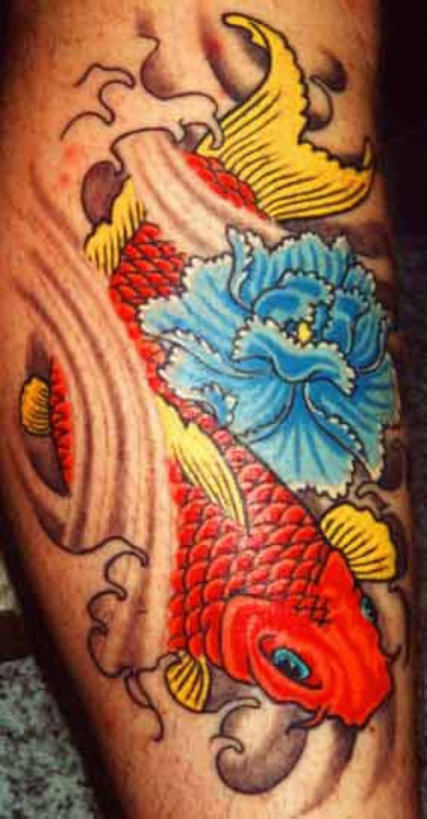 old school鲜艳的鲤鱼花卉纹身图案