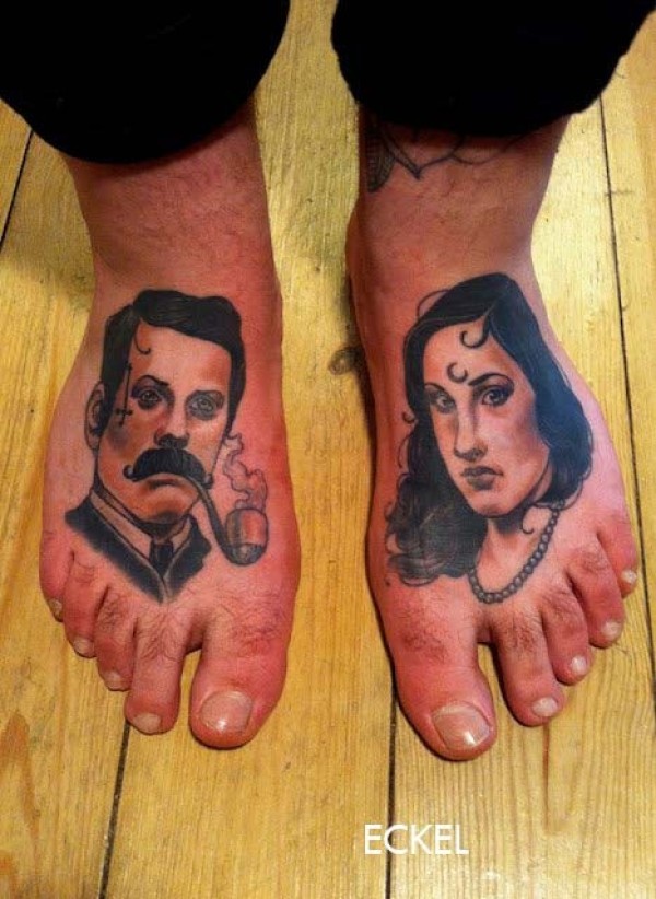 脚背男子和妇女肖像纹身图案
