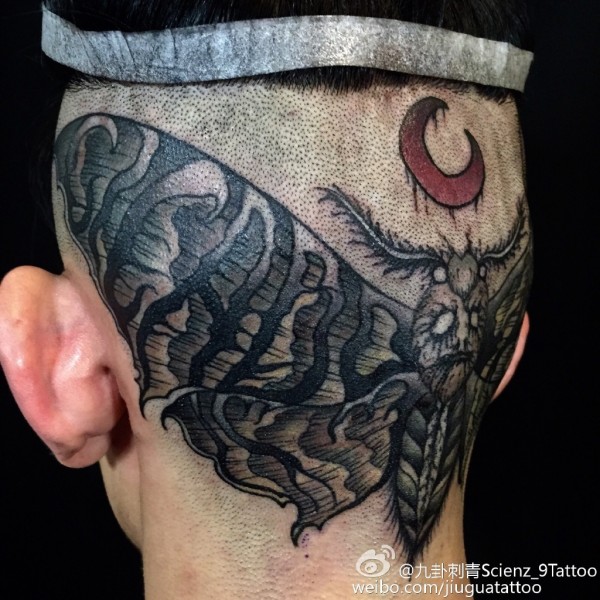 脑袋后面纹了一只扑棱蛾子~
