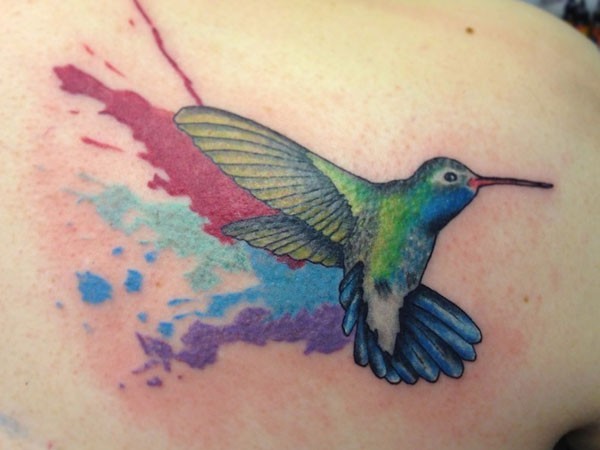 丰富多彩的泼墨水彩蜂鸟纹身图案