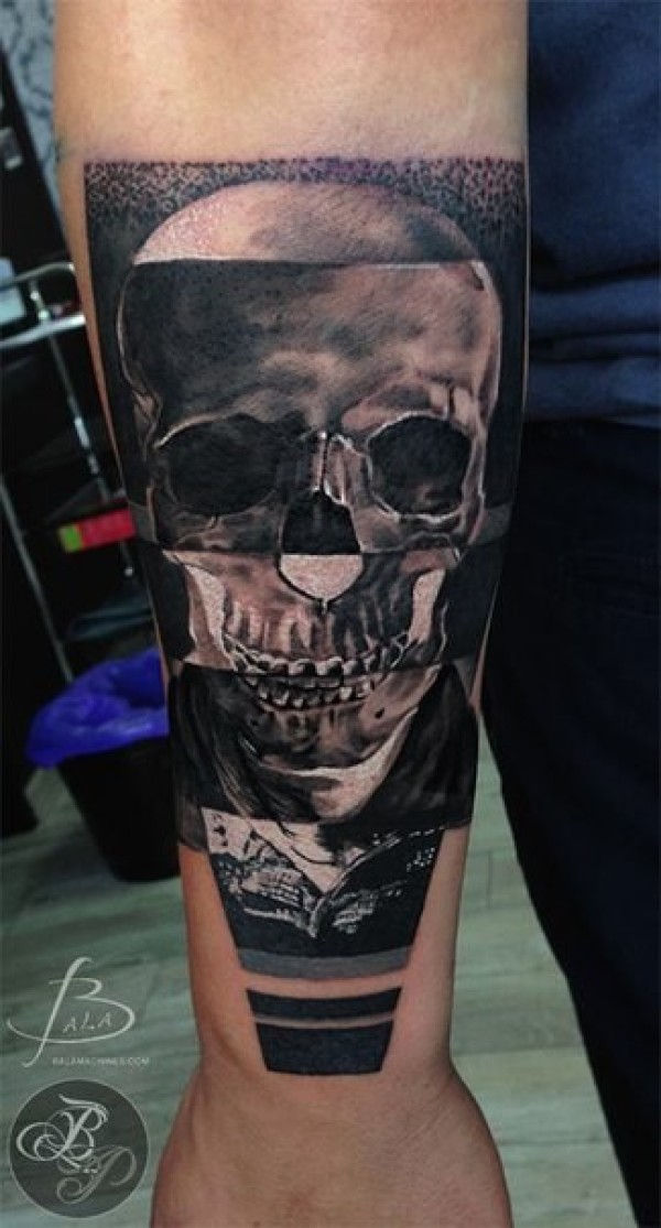 小臂有趣的冷静骷髅纹身图案