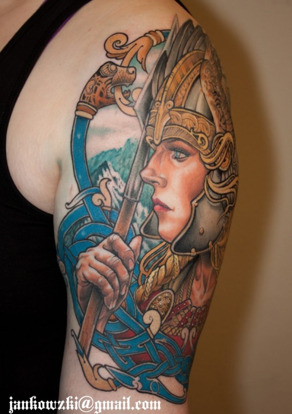 手臂幻想式战斗女王肖像纹身图案
