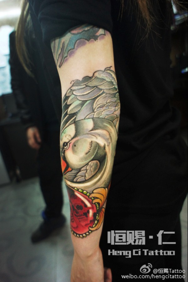 school花臂纹身--一组漂亮的school风格的花臂纹身图案作品
