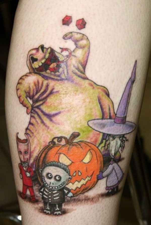 小腿卡通彩色各种圣诞节幽灵纹身图案