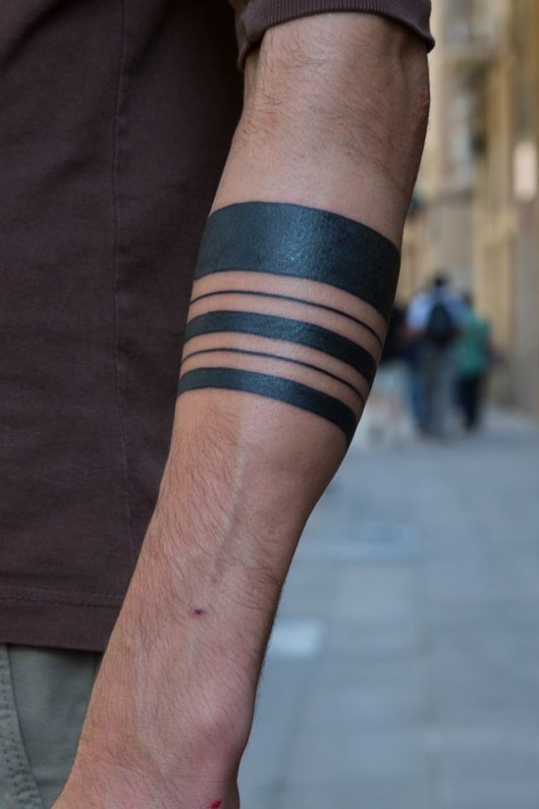 手臂不同粗细的黑色线条部落纹身图案