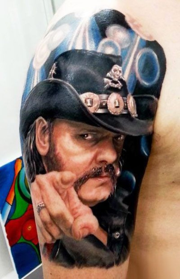 大臂有趣逼真的彩色音乐家肖像纹身图案