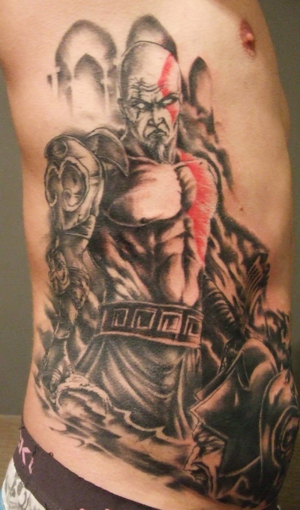 侧肋漫画彩色邪恶的野蛮人战士纹身图案