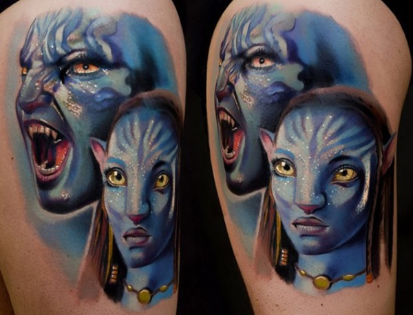 大臂逼真的阿凡达肖像纹身图案