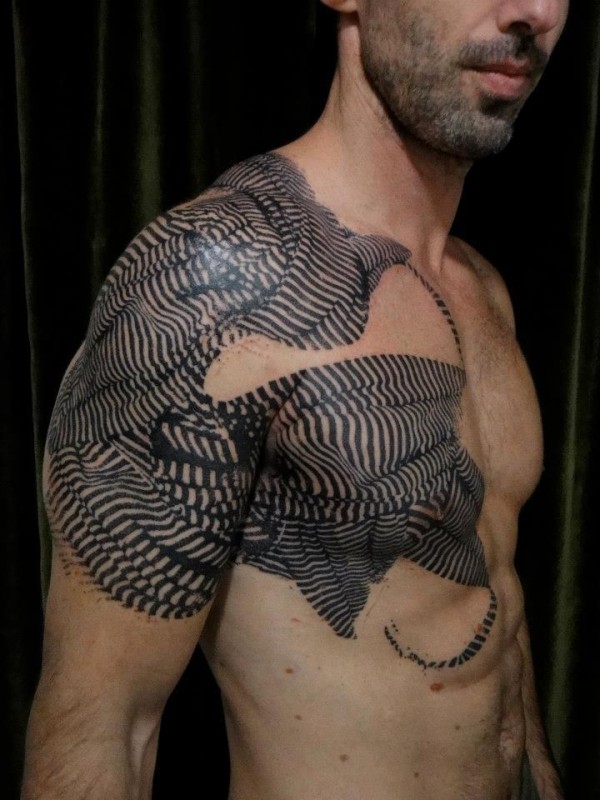 男性肩部胸部创意斑马条纹个性纹身图案