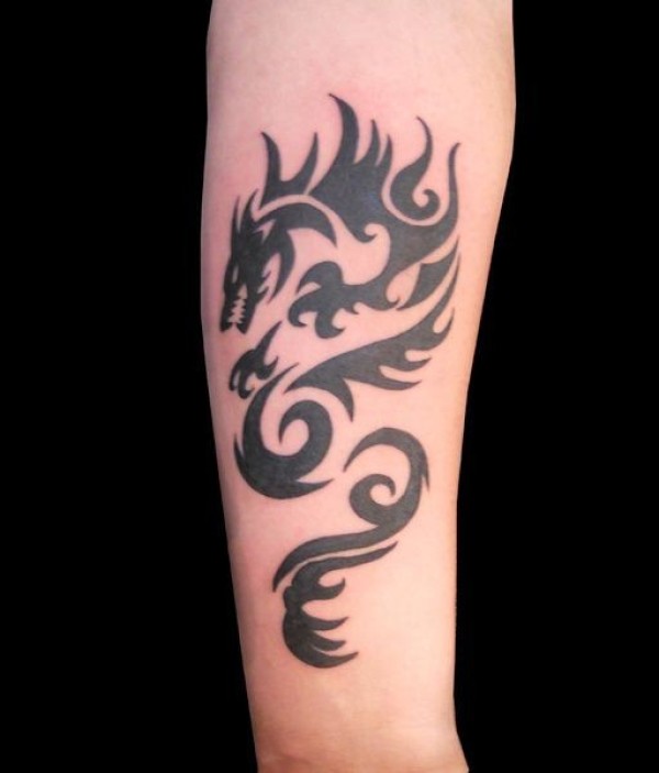 龙纹身手稿_一组老传统黑灰龙手稿纹身图案