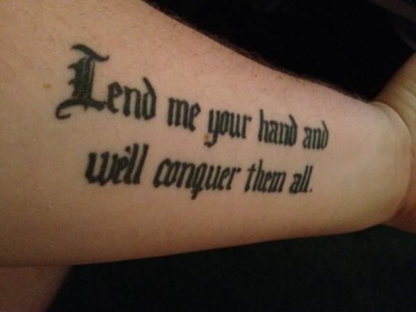 手臂黑色的字母纹身图案