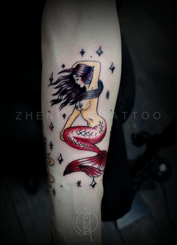 school花臂纹身--一组漂亮的school风格的花臂纹身图案作品