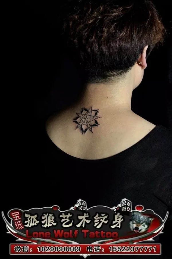 后颈部纹身小图--9张女生脖子后颈处的简约纹身图案