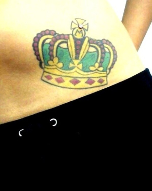腹部金色的皇冠纹身图案