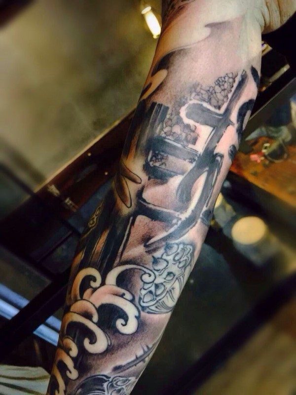 清新淡雅 北京newtattoo纹身店陈洁山水水墨纹身 (一)