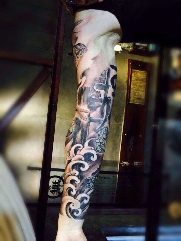 清新淡雅 北京newtattoo纹身店陈洁山水水墨纹身 (一)