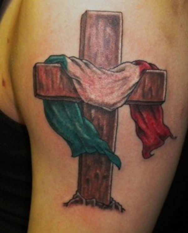 彩色木十字架与国旗意大利纹身图案