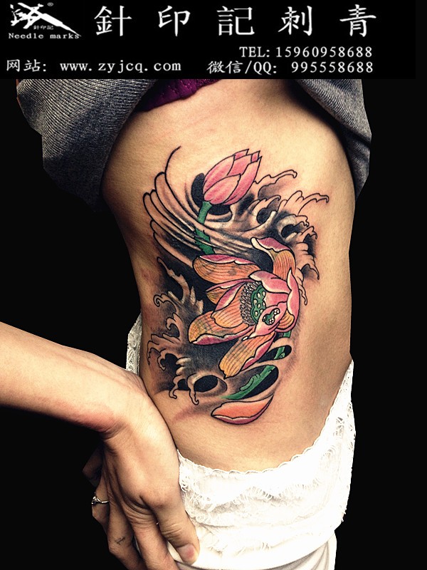 腰部莲花纹身-福建三明沙县针印记刺青胡宇作品