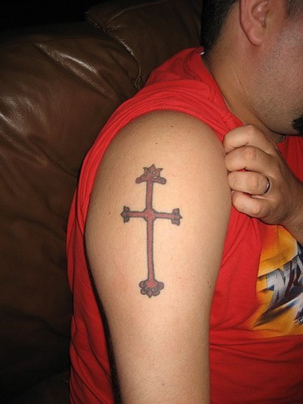 简约的红色十字架纹身图案