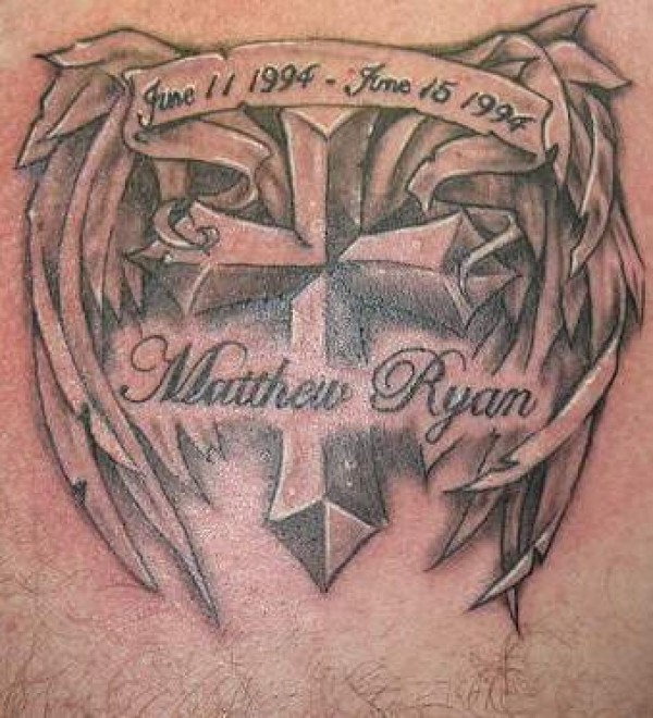有翅膀的十字架纪念纹身图案