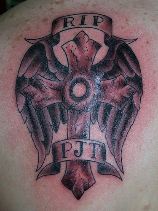 有翅膀的十字架纪念纹身图案