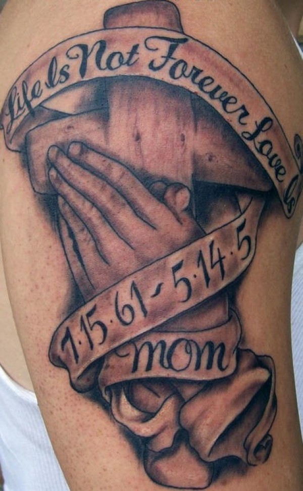 十字架和祈祷的手纪念纹身图案