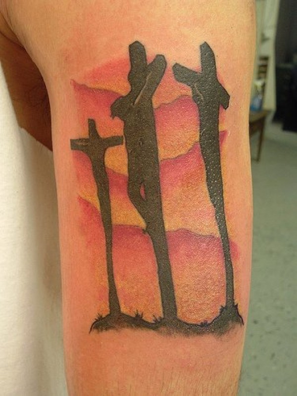 彩色的墓地十字架纹身图案