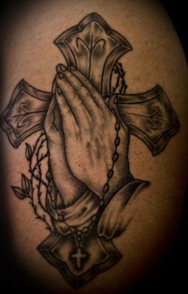 十字架和祈祷之手纹身图案