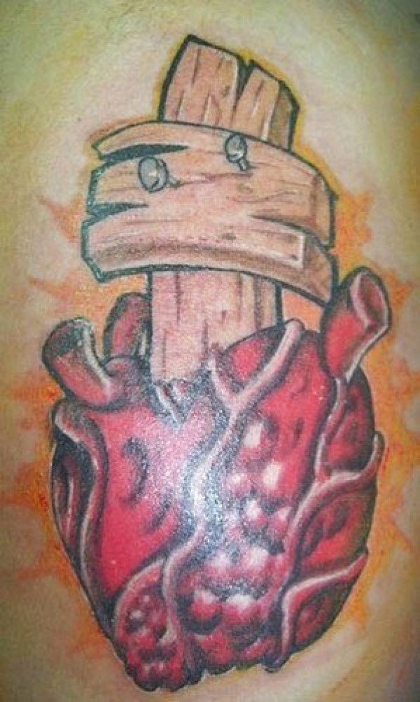 心脏与木制十字架纹身图案