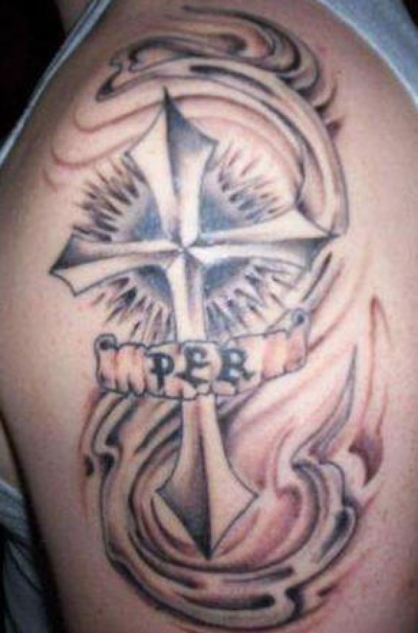 十字架在旋涡纪念纹身图案