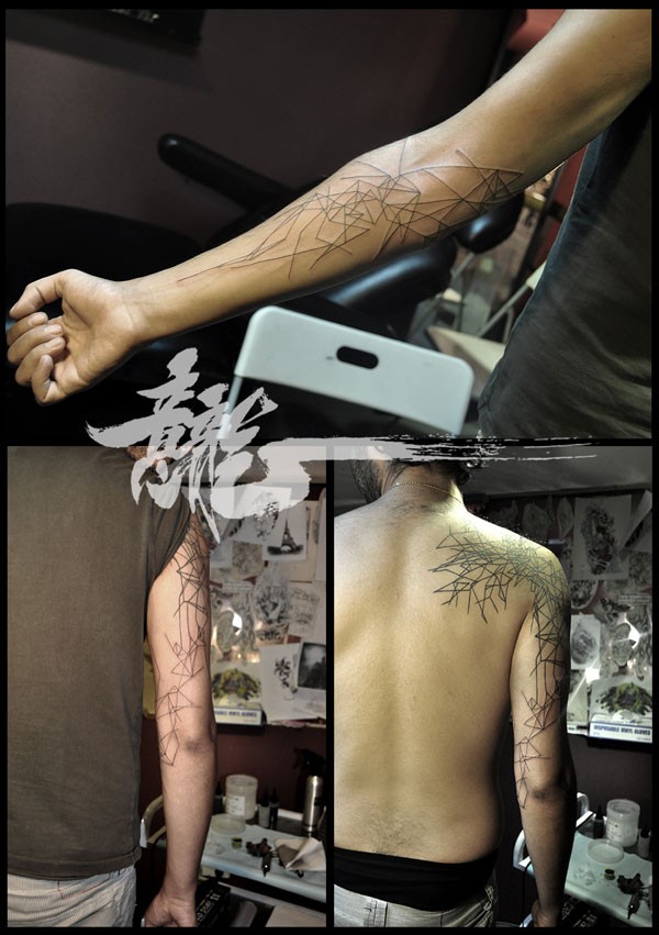 如刀割一般凌乱的简单线条纹身图案